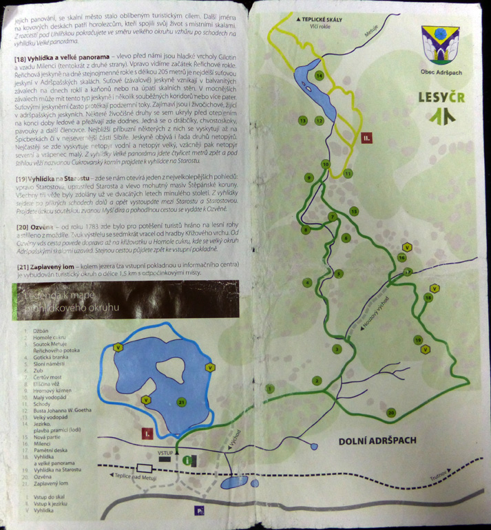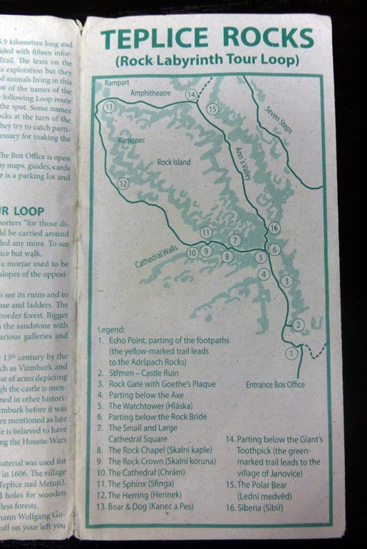 En la entrada de la ciudad roca de Adrspach nos dieron un mapa con el recorrido que podíamos hacer y las explicaciones pertinentes en checo. Así que emprendimos el paseo a pesar de que el cielo amenazaba tormenta.
