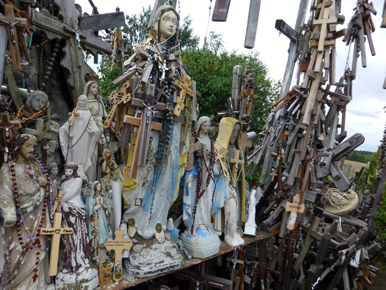 En 1993, el papa Juan Pablo II mandó levantar una enorme cruz durante una de sus visitas a Lituania. A partir de ese momento, este curioso lugar perdió el halo pagano de sus orígenes y se convirtió en un centro de peregrinación católico.