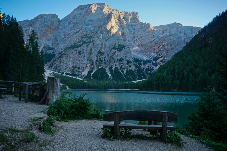 A lo largo del paseo hay varias zonas de picnic y áreas de descanso. Los bancos están estratégicamente situados para que te acomodes y contemples el paisaje. Es una pasada ver el reflejo de las montañas sobre las cristalinas aguas del lago di Braies.