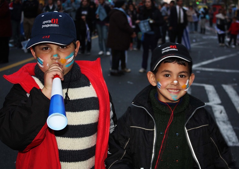 Bocinas, tambores y caras pintadas. Eso es lo que me encontré al salir de la redacción para embriagarme de la emoción y la alegría uruguaya, para empezar a sentir unos colores que no son los míos pero ya como si lo fueran.