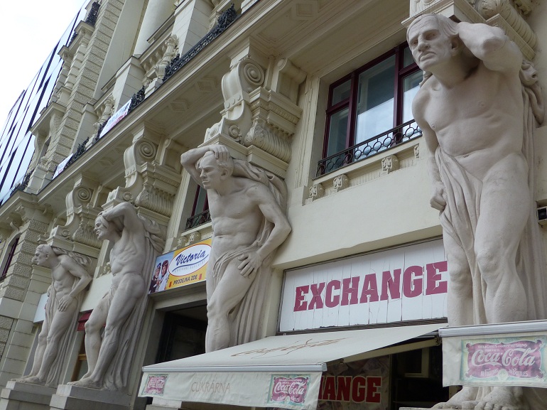 O Námestí Svobody es la plaza principal de Brno y el centro neurálgico de la ciudad. Aquí se encuentra la columna de la peste, a la que apenas pudimos acceder porque estaba tomada por el mercado medieval. Y en uno de los laterales la casa de los cuatro idiotas, cuya fachada está sostenida por cuatro musculosos hombres con cara de bobos.