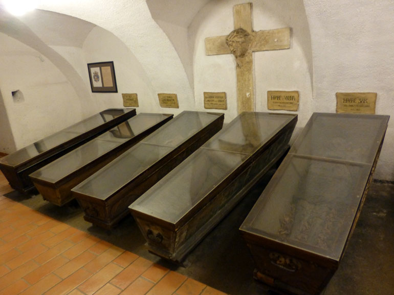 Los análisis antropológicos revelan que alberga a víctimas medievales de la peste y la cólera, víctimas de guerra de la época de la Guerra de los Treinta Años y del asedio sueco. Si necesitas más información, te dejo su página web para que organices tu visita.