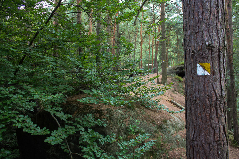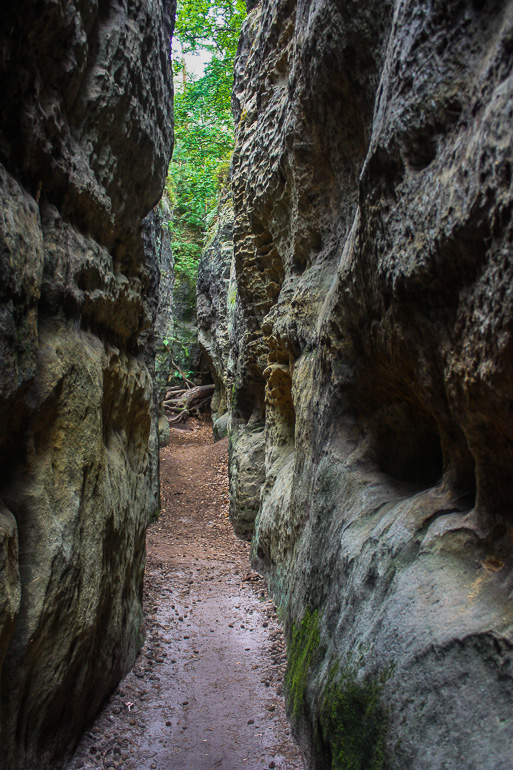 La siguiente parada era un laberinto tallado en piedra arenisca (Průsečná skála) que fue utilizado por el ejército sueco durante la Guerra de los Treinta Años. Se podía cruzar por arriba o por abajo.
