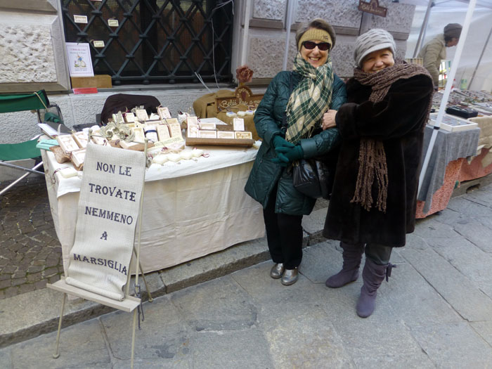 Nada más llegar a Como nos dirigimos hacia el centro de la ciudad donde nos topamos con un mercado de artesanías. Hubiéramos pasado por él sin pena ni gloria sino hubiera sido porque estuvimos parlando con unas tenderas largo y tendido sobre sus jabones de Marsella, nuestra escapada a tierras lombardas y sus visitas a Madrid y las Islas Baleares. Muchas veces nos dejamos atrapar en nuestra rutina y vamos como burros sin pararnos a charlar, observar, escuchar (aunque no entiendas la mitad de lo que te cuentan). Hacía mucho que una charla casual con dos extrañas no me arrancaba tantas sonrisas.