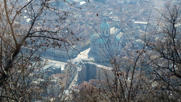 Para subir al faro primero cogimos el funicular que está como al otro extremo de Como bordeando un poco el lago. Las vistas desde este punto no son una maravilla. Es más, son bastante decepcionantes porque solo se ven copas de árboles. Se ve todo mucho mejor si consigues hacerte un hueco en el funicular y pegar el ojo al cristal.